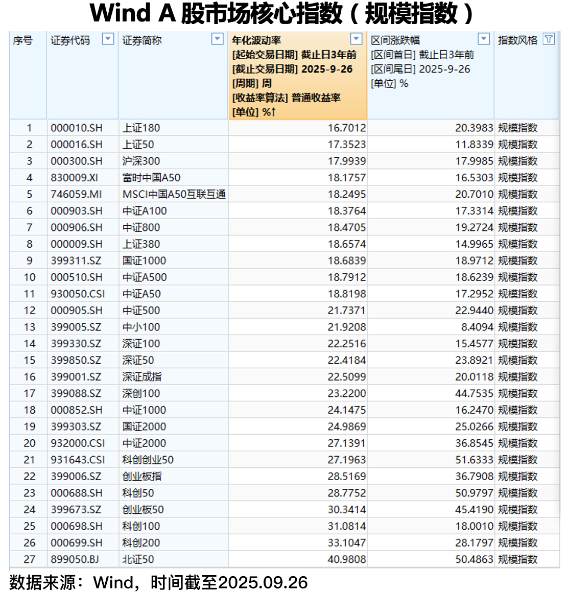 在Wind A股市场核心指数中,共有27个规模指数,其中上证180指数近3年年化波动率为16.70%,最低。同时从业绩表现来看,对比上证50、沪深300等大盘指数,同期涨幅最高。