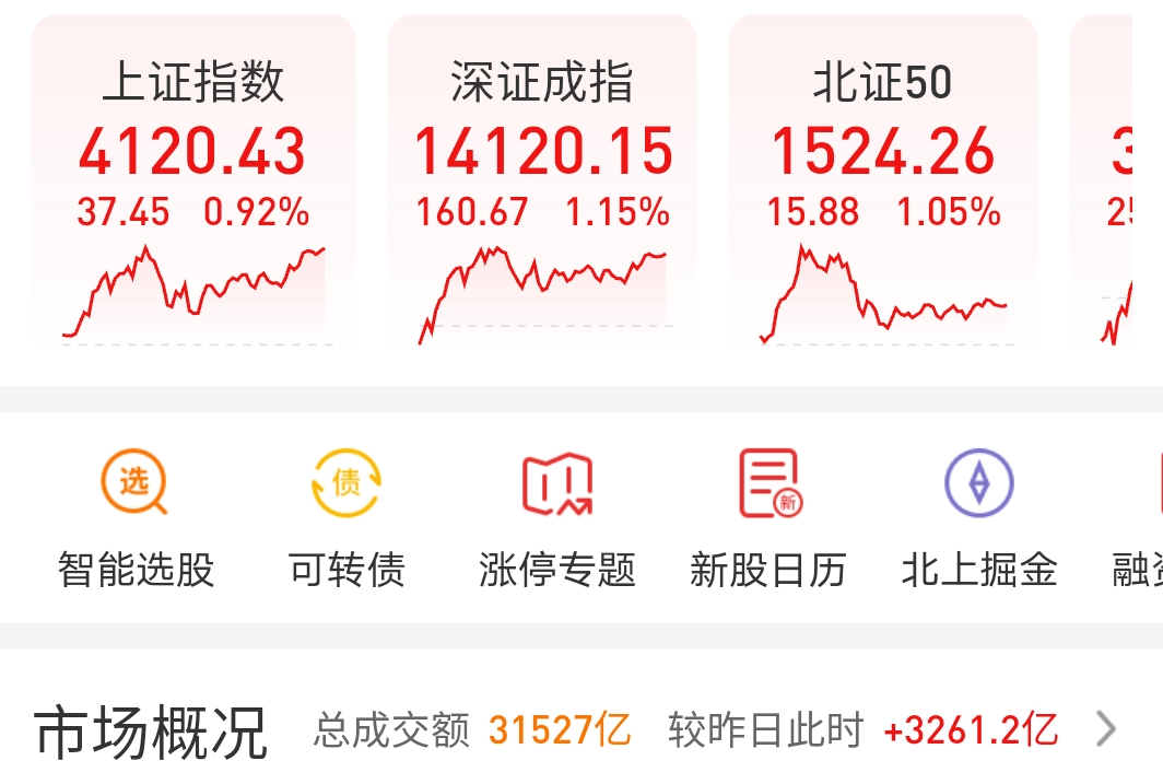 今天进场资金新增3261亿,导致A股三大指数全面上涨,让所有投资者彻底疯狂,以上板块涨得让人发麻,令人疯狂,很多人在网上发言进场晚了,一直在观望没敢进,进了怕跌,不进看着上涨如同损失了一大笔的感觉,进退两难,如今的市场如同火锅一样,吃吧麻舌头,不吃还想吃,这就是最难的时候,也是市场发力的时候