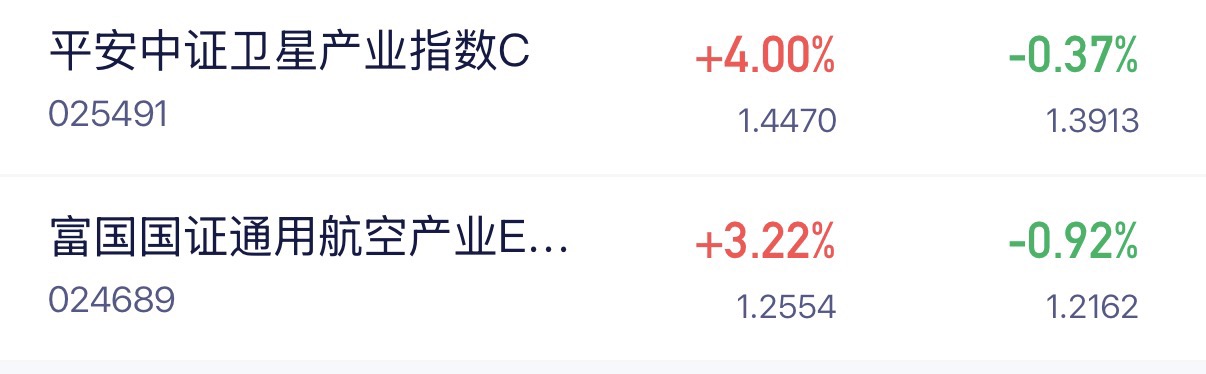 昨天进了卫星的人真的太幸福了吧,这波行情真是压都压不住呢。$平安中证卫星产业指数C$ 目前估值已经来到了4.95%,今晚大肉预定了呢,而且近一年涨了39.13%,高纯度卫星产业真的太强势了