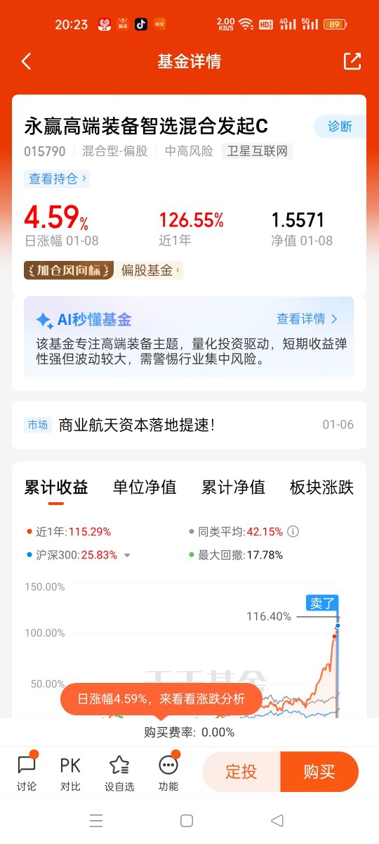 今天‘’航"字头及军工领涨,航天航空航海航母涨幅靠前。我手中持有的永赢高端装备智