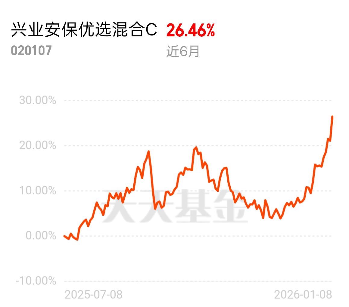 主动权益基金业绩快速修复,科技和军工成为核心驱动力,赛道优势越来越明显。兴业安保优选混合 C 近 6 月 26.46%,聚焦军工 + 商业航天卫星,昨天净值比不少基金都强,想布局优质赛道的现在上车正当时。$兴业安保优选混合C$