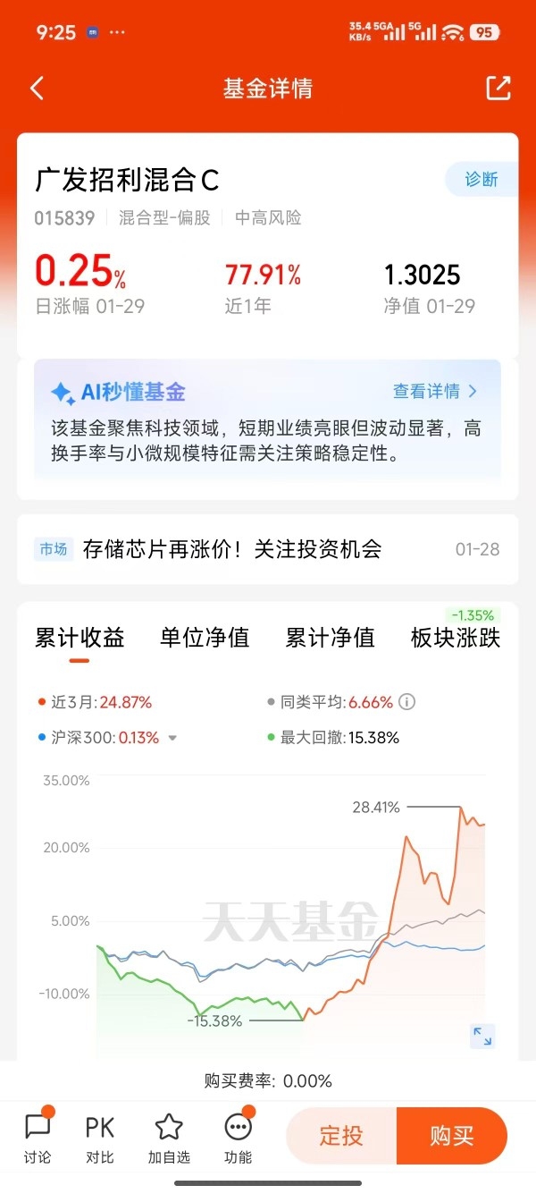 其他基都跌了,广发招利混合C昨天涨了出乎意料,表现不错,趋势摆在这里,都说2026是商业航天大年,展会一个接一个,300多家企业同台竞技。这种产业趋势下,拿住核心基金比较省心。准备分批加点仓$广发招利混合C$