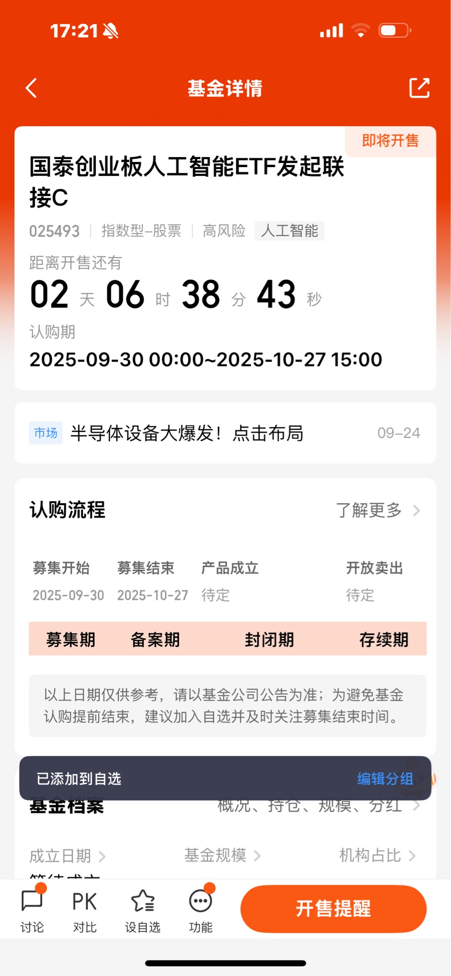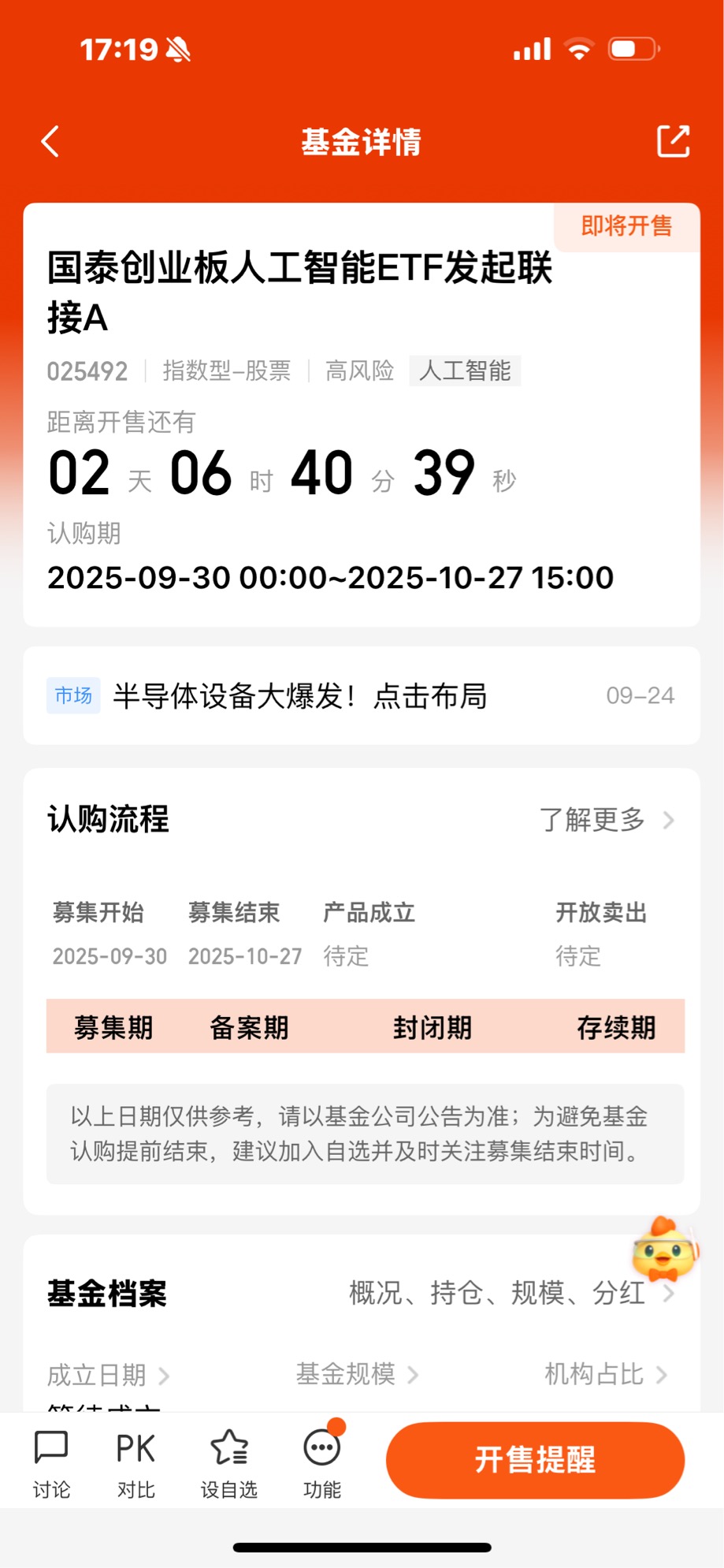 9月30号,国泰创业板人工智能ETF联接(A类:025492;C类:025493)正式发行,有望为场外投资者布局人工智能提供全新工具。感兴趣的话可以同我一起加自选关注起来啦!接下来让我们一起看本基金的亮点总结。