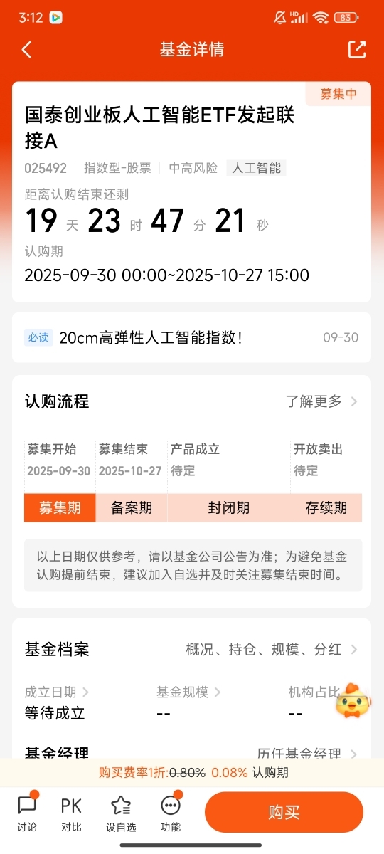 距发行截止的日子不远了,我已经把它加入了自选,也做好了资金规划,打算在发行后根据市场情况分批布局。如果你也长期看好AI产业,又觉得自己研究不过来全链条的机会,这只基金或许值得重点关注。毕竟,在科技革命的浪潮里,选对工具往往能让我们少走很多弯路,而这只基金,在我看来就是那条“捷径”。@国泰基金