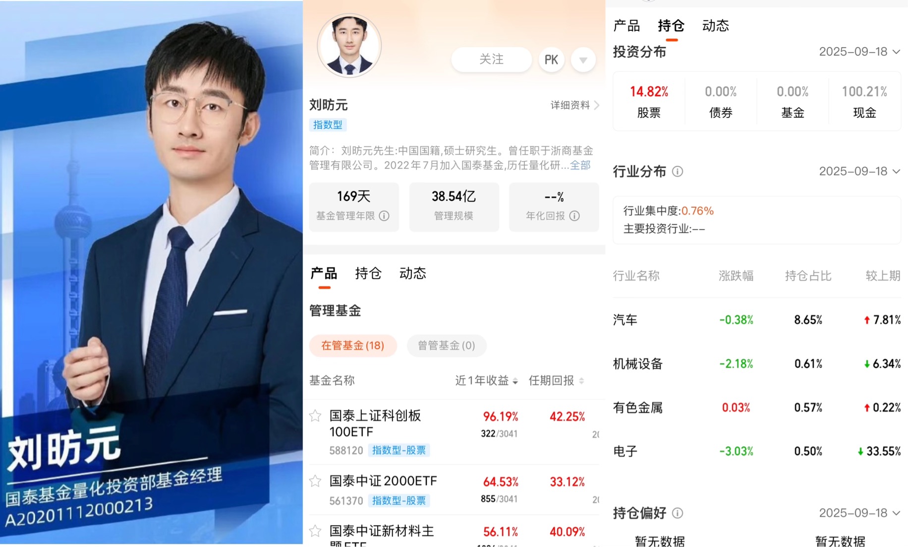 再说说基金经理刘昉元。这是一位非常年轻有为的潜力之星!刘昉元先生是中国国籍,硕士研究生。他曾任职于浙商基金管理有限公司,2022年7月加入国泰基金,历任量化研究员、基金经理助理。他管理过不少指数基金,比如国泰上证科创板100ETF、国泰中证2000ETF等,近1年收益表现都相当不错。从他管理的基金来看,他在指数基金的管理上是有自己的一套方法的,经验也比较丰富。有这样一位基金经理掌舵,这只基金的运作也更让人放心。