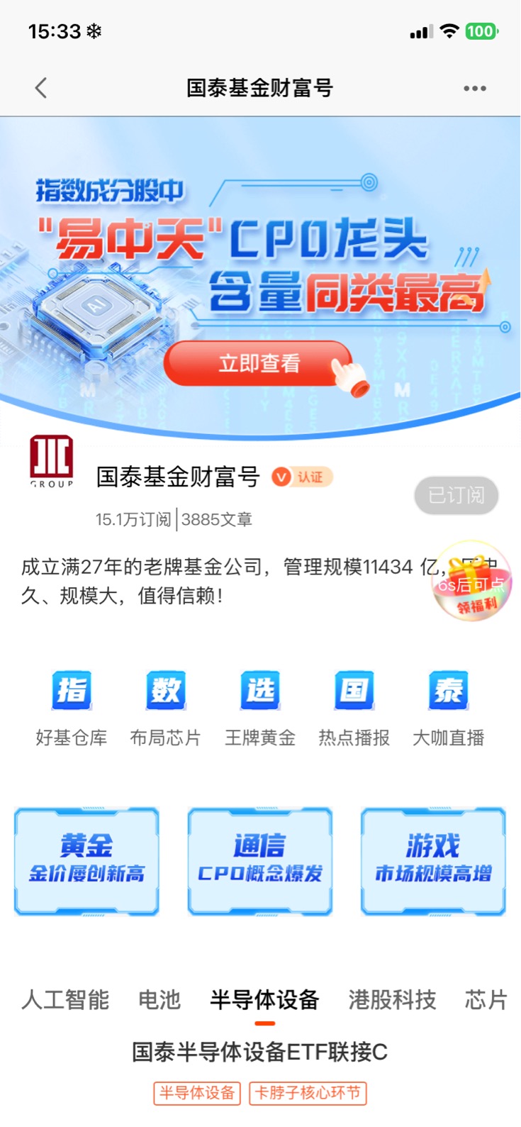 投资思路:$国泰创业板人工智能ETF发起联接A$ $国泰创业板人工智能ETF发起联接C$ 是借基布局创业板人工智能投资机遇的优选!这只新基金所关联的创业板人工智能指数,聚焦AI硬科技,通信含量相对较高,重点覆盖光模块、AI算力、云服务等行业,实现“上游算力+中游模型+下游应用”的AI产业链全覆盖;日涨跌幅可达20%,历史表现优异,连续两年跑赢同类AI指数,基日以来上涨超419%,更是大幅领先同类。