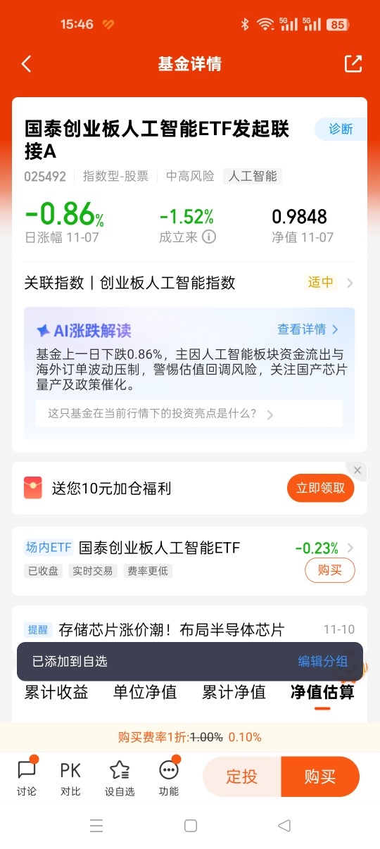 @国泰基金 $国泰创业板人工智能ETF发起联接A$