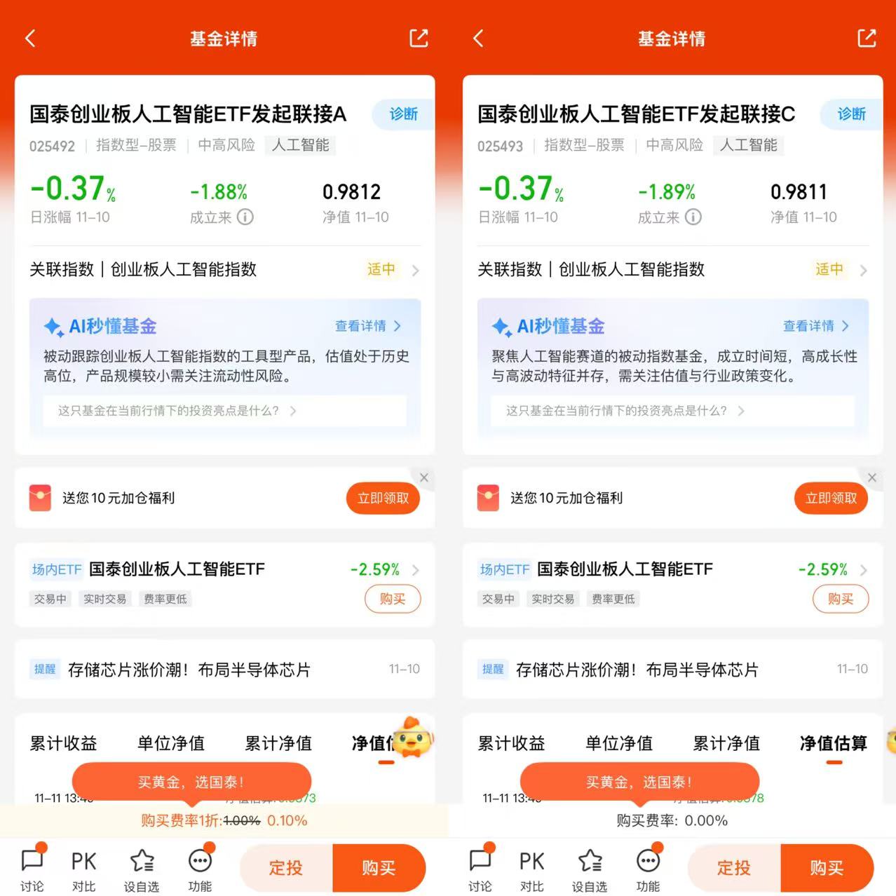 国泰创业板人工智能ETF联接基金(A类:025492,C类:025493)是一只跟踪创业板人工智能指数的发起式联接基金,于2025年10月29日成立。