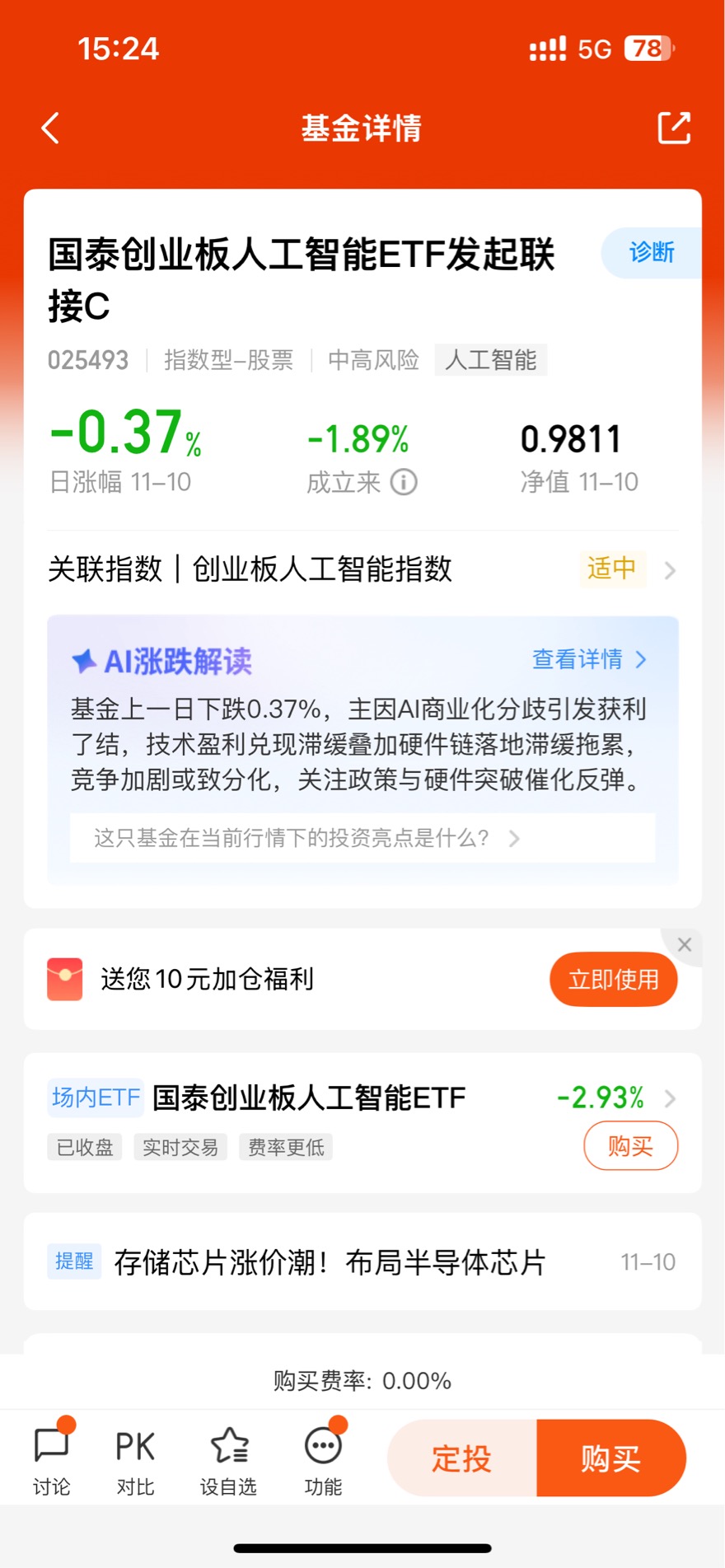 #人工智能怎么投# #科技热点摊开业啦# #4000点 到底要不要止盈?# #11月基金投资策略# 创业板AI这条赛道值得重仓布局!聊起当下最火的投资风口,人工智能绝对是绕不开的核心话题!而创业板作为创新企业聚集地,更是藏着不少AI细分领域的潜力标的——$国泰创业板人工智能ETF发起联接C$ 正好给普通投资者搭了个便捷通道,不用纠结个股选股,一键布局创业板AI优质企业~