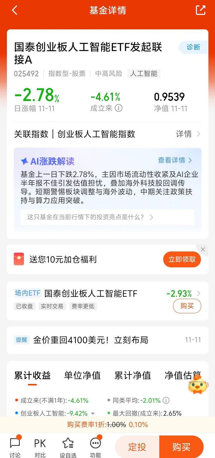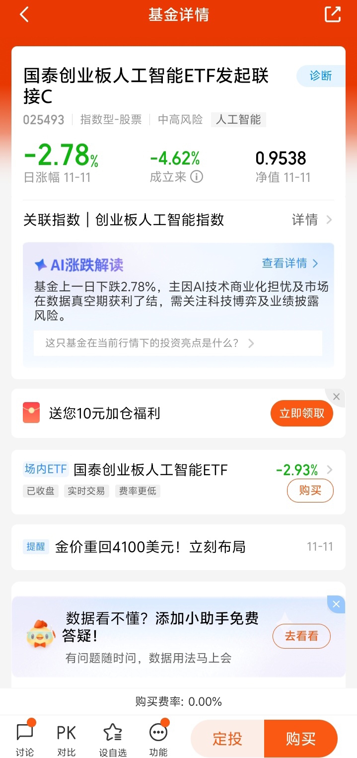 产品设计贴心:对于场外投资者而言,投资门槛极低,10元起投。而且作为ETF联接基金,能让投资者不用自己研究个股,通过投资该基金就可一键布局AI的全链路资产,分散风险又省心。@国泰基金
