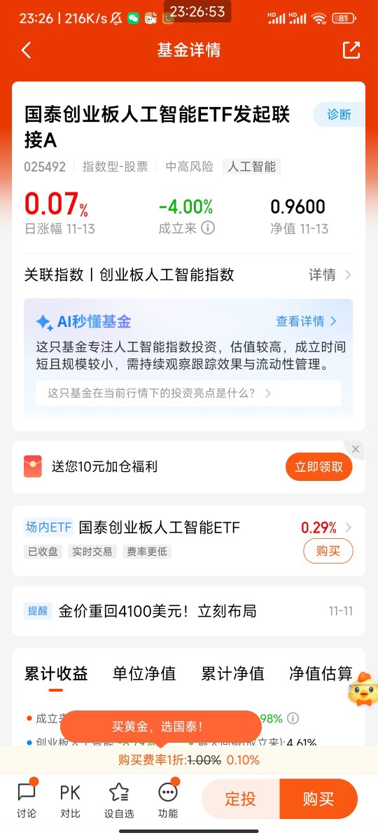 #人工智能怎么投# #沪指刷新10年新高!4100点指日可待?# #科技小登大揭秘# $国泰创业板人工智能ETF发起联接C$