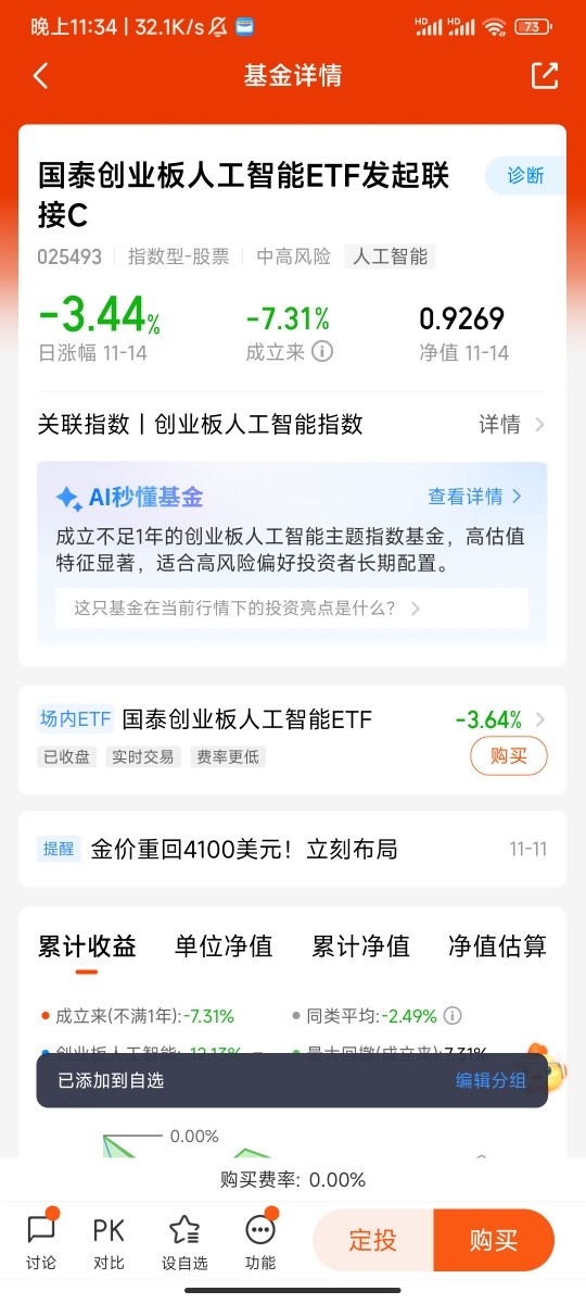 #人工智能怎么投# #沪指失守4000点!全面牛市何时到来?# $国泰创业板人工智能ETF发起联接C$