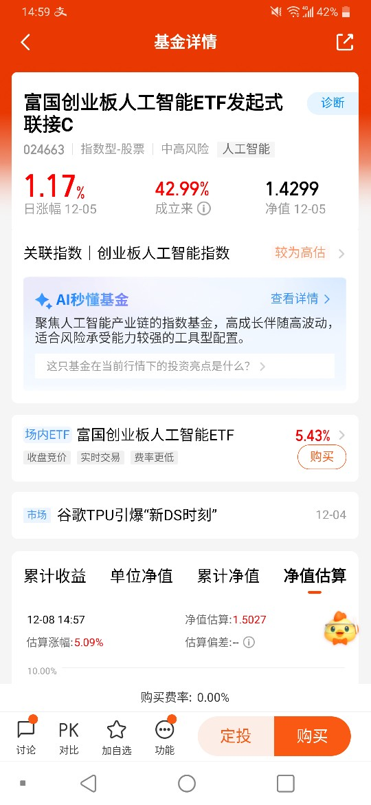 人工智能产业链布局更精准,全面覆盖AI“硬件+软件+应用”,富国创业板人工智能$富国创业板人工智能ETF发起式联接C$ 估值上涨5. 09%,