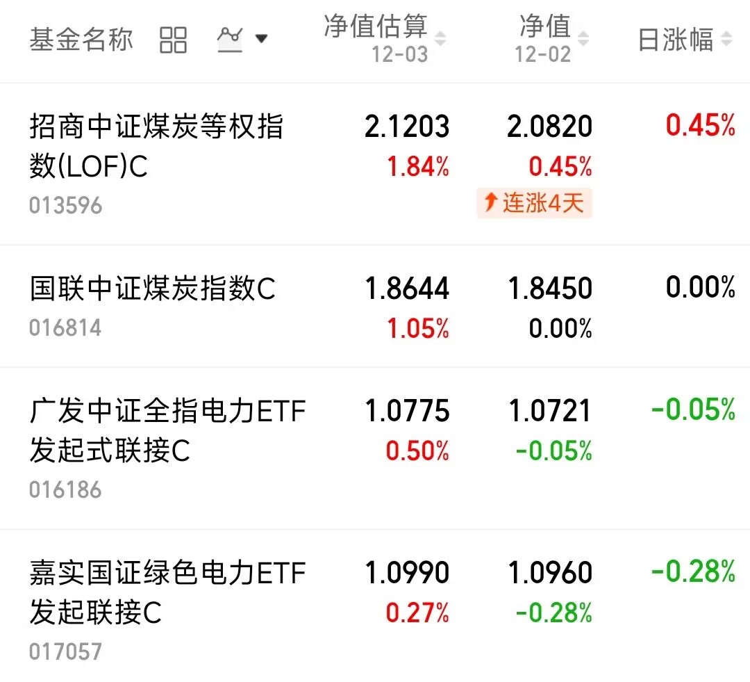 现在能源安全是重点,煤炭行业政策支持力度足,企业盈利有保障。震荡市行情难把握,煤炭基金却不用靠猜 —— 跟着煤价波动和行业红利走,近阶段不少产品业绩都很亮眼$招商中证煤炭等权指数(LOF)C(OTCFUND|013596)$昨日上涨0.45%。
