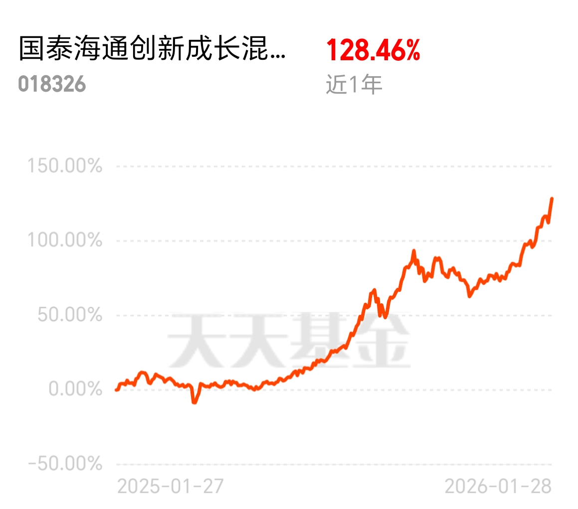 国泰海通创新成长混合发起C的投资眼光太毒了,近1年128.46%收益,聚焦高景气