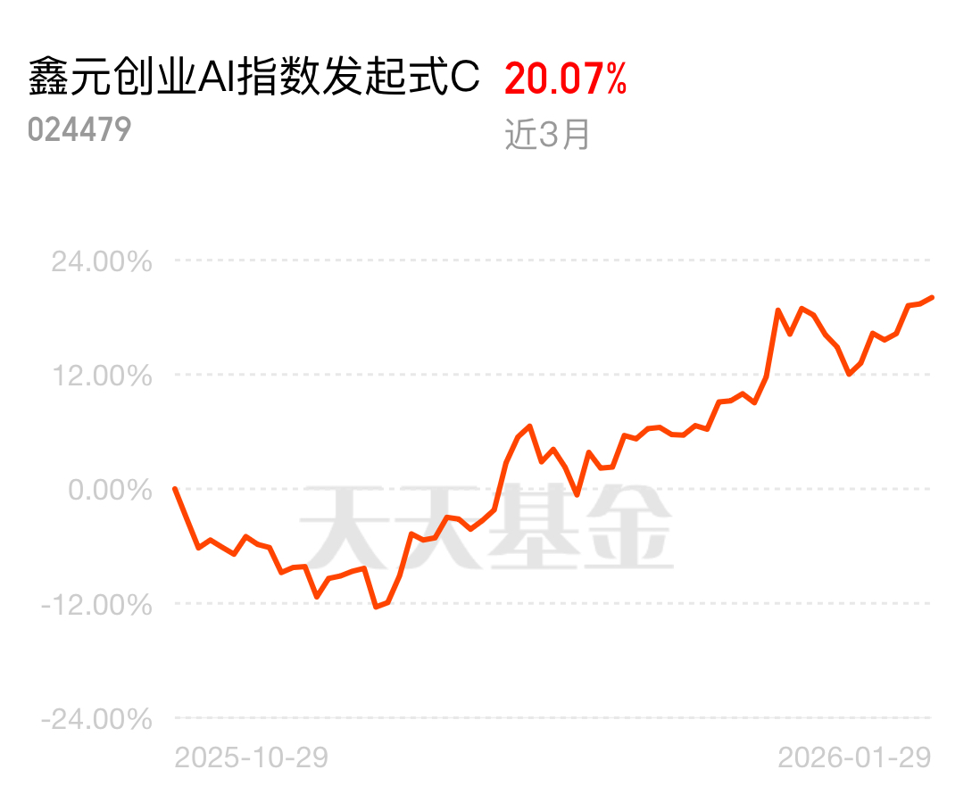 鑫元创业AI指数发起式C今日+0.56%,布局在创业板AI硬件赛道,近3月收益2
