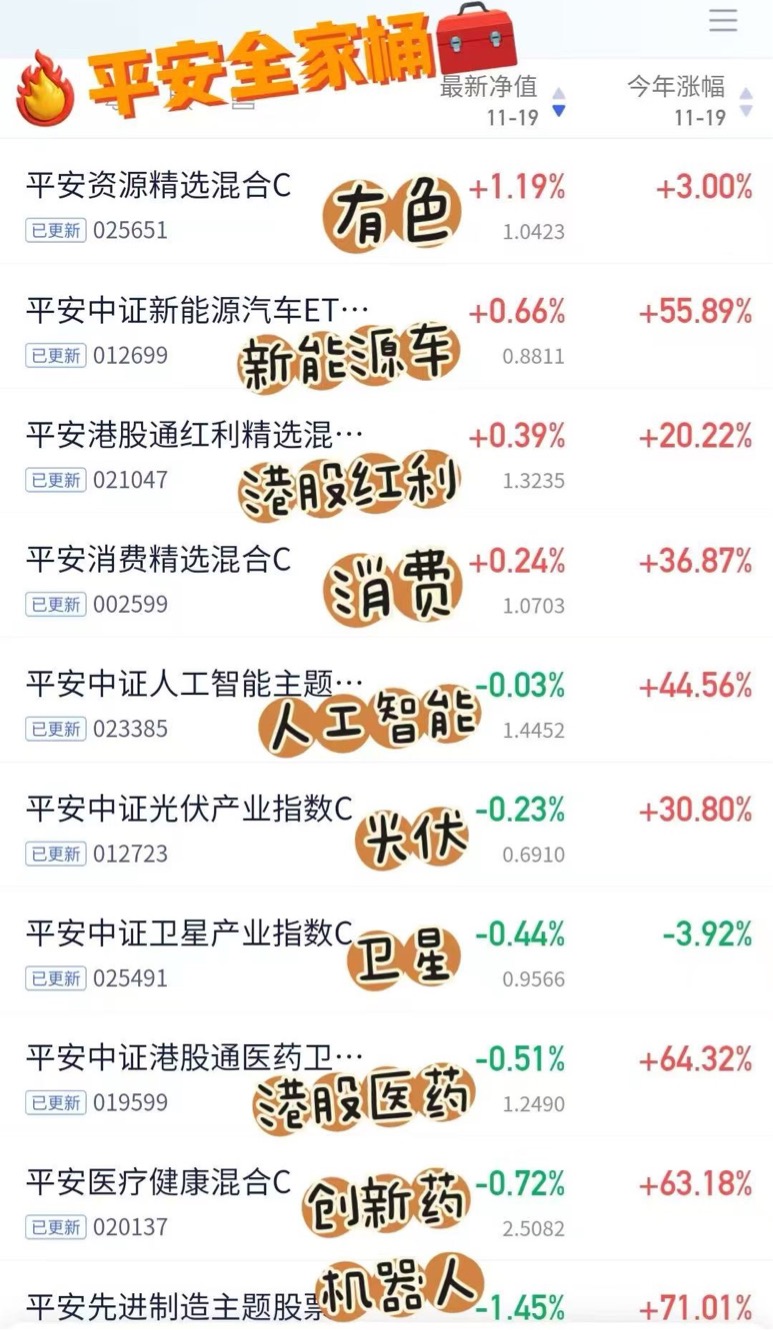 今天市场波动有点大,但平安家族基金整体表现依然可圈可点,来看看今日份的净值表现: