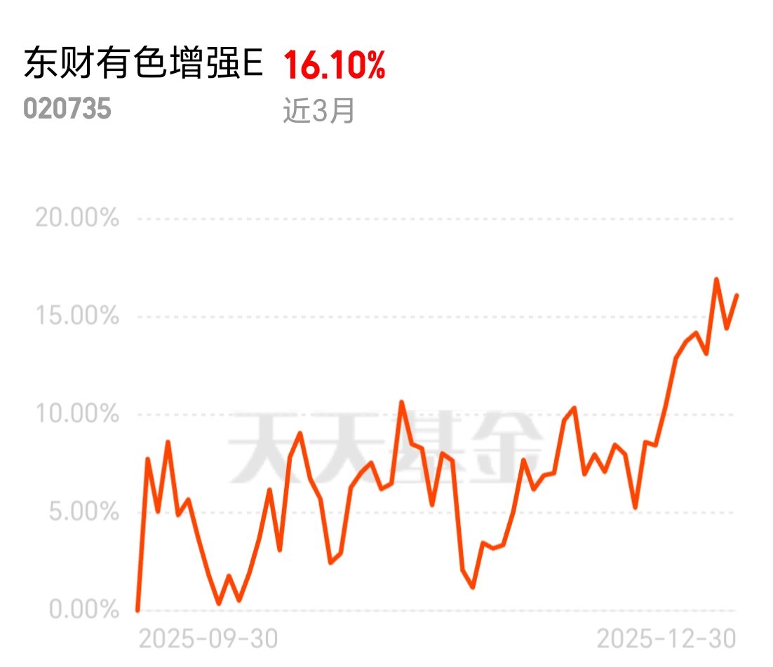 AI 数据中心、新能源汽车越发展,对铜铝等有色需求越旺,价格自然往上走。东财有色增强 E 近 3 月涨 16.10%,紧跟产业风口,用实实在在的收益帮你分享行业成长。