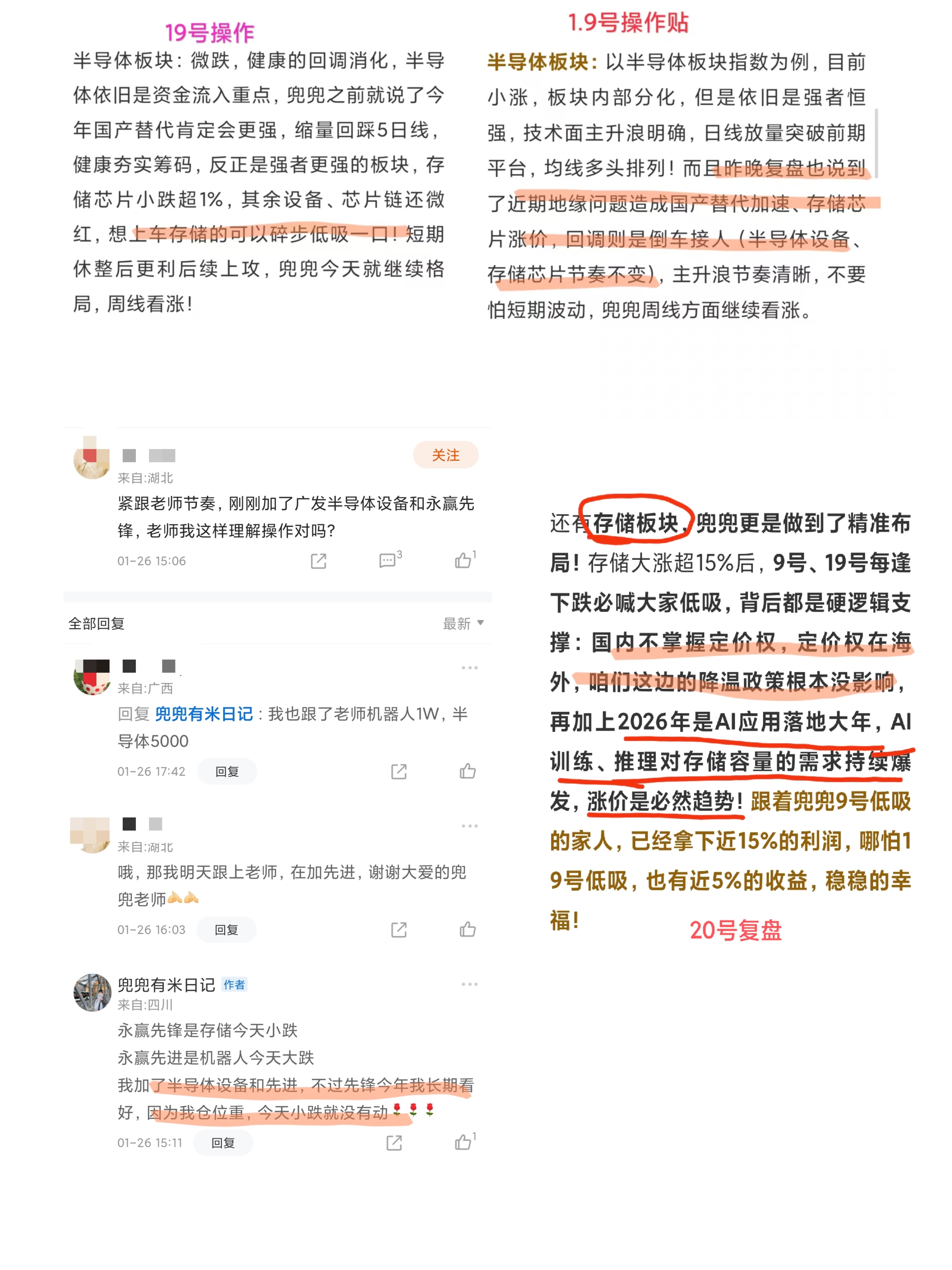 - 存储芯片:1月19号果断喊上车,随后两天直线拉涨超5%,今天再涨超4%,肉香都飘出屏幕了;