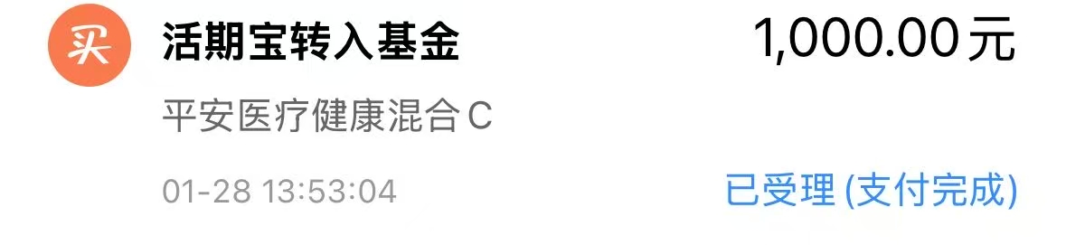 今日继续重点加仓$平安医疗健康混合C(OTCFUND|020137)$ 1000元