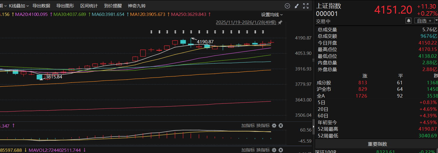 技术面上,今天上证沿着5日均线反弹,近期基本在4100-4150区间波动,收盘基本在这个区间,形成了一条直线,维稳是主基调,还剩2个交易日,到了2月新的上限可能打开