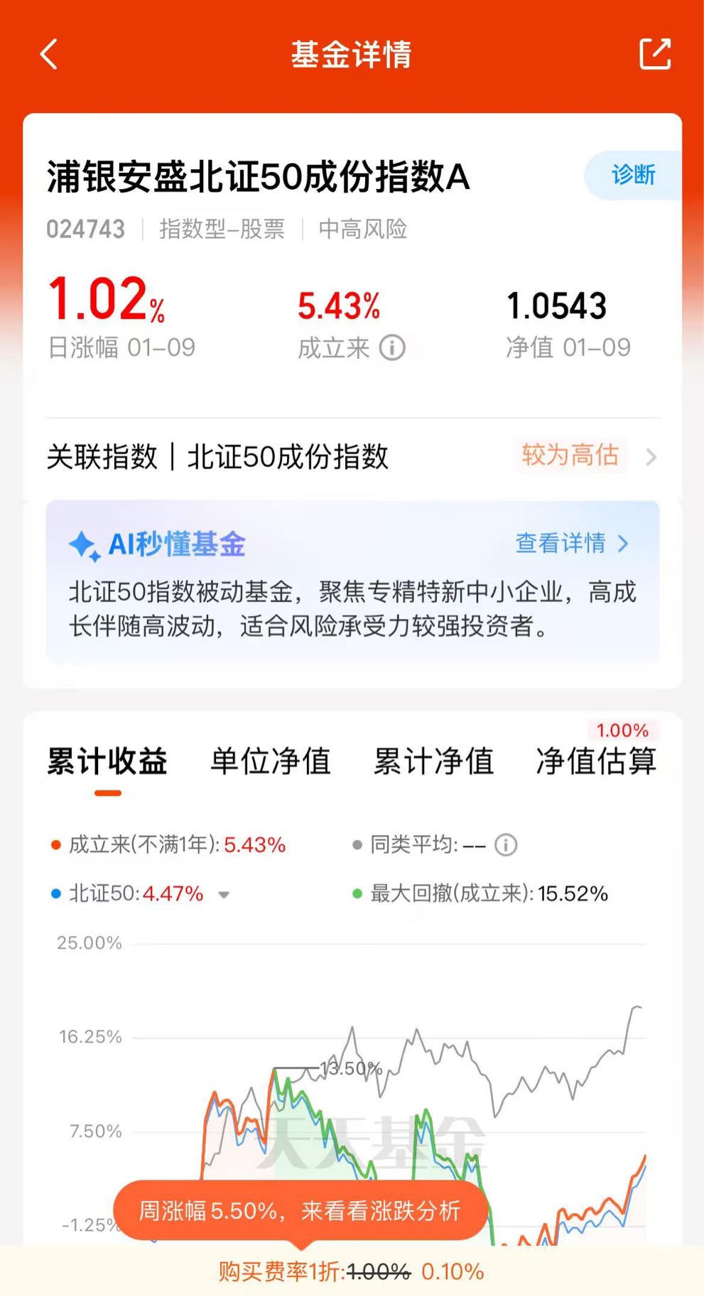 $浦银安盛北证50成份指数A$今天继续上涨!这周连涨5天,开门红太香了不限购的浦