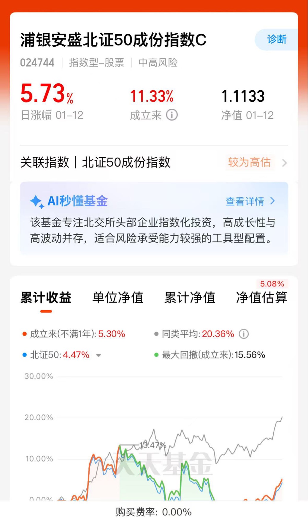 $浦银安盛北证50成份指数C$今天大涨5.73%,专精特新企业含量远超其他宽基指