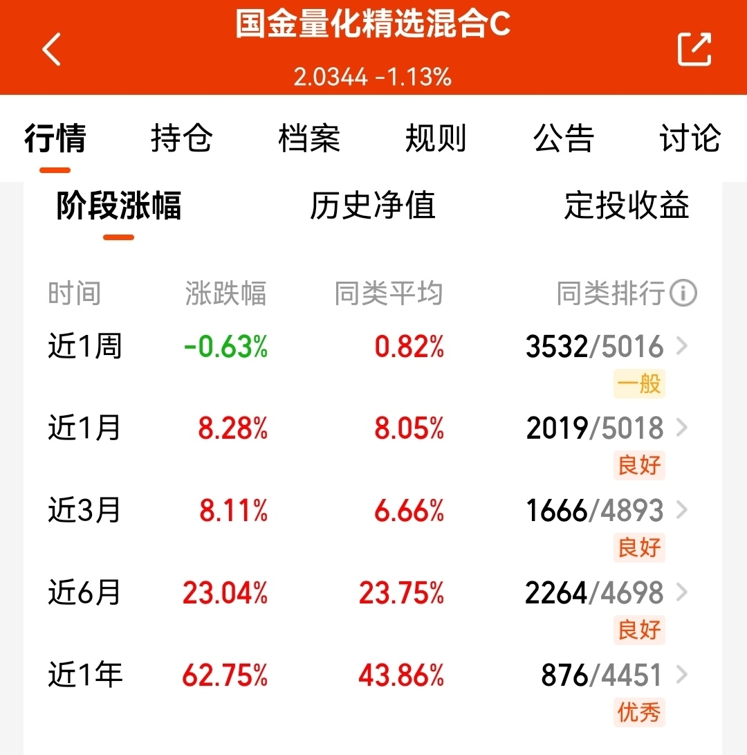 今天又来补点$国金量化精选混合C$ ,限额放开了抓紧补了,和国金量化多因子同策略的,各阶段业绩也都挺稳的