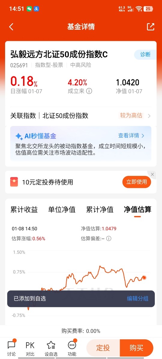 不过对普通投资者来说,直接闯北交所市场可不轻松,50万的开户门槛先把不少人挡在门外,而且中小市值科技企业的研究就像“拆盲盒”,得花大量精力去分辨企业的技术实力是真硬核还是炒概念,业绩是实打实还是掺了水,想精准抓准单一标的的投资节奏太难了。我注意到,$弘毅远方北证50成份指数A$/ $弘毅远方北证50成份指数C$ /$弘毅远方北证50成份指数I$ (A类:025690;C类:025691;I类:026513)给普通投资者搭了座“便民桥”,10元起投的低门槛直接把北交所的开户限制给拆了,让更多人能共享北证50指数的成长红利。该基金走纯粹的指数化投资路线,紧紧跟着北证50指数的脚步走,既不用担个股选择的风险,又能完整吃到指数的整体收益;同时基金还支持定投,分批投钱的方式能有效摊平市场波动的成本风险,和普通投资者的投资习惯也契合,是布局北证50赛道的趁手工具。