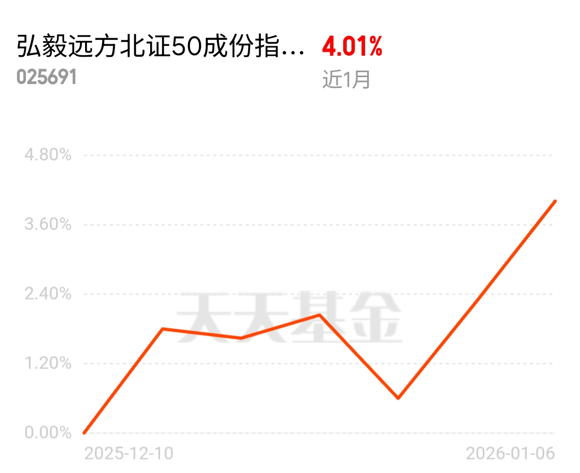 作为一名入市多年的普通投资者,我始终相信“好赛道+好工具+长期坚持”是普通人实现财富稳健增长的核心逻辑。经过大半年的观察与研究,我坚定看好北证50的投资价值,更认定当下正是布局的黄金时机,而我的选择是——定投弘毅远方北证50成份指数C,目前已正式开启定投计划,打算长期坚守这份投资信念。