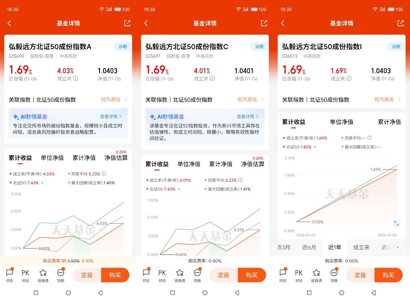 对普通投资者而言,北证50的高弹性虽诱人,但30%的涨跌幅限制也意味着短期波动不小,而定投正是应对波动的最佳策略。通过定期定额投入,市场下跌时能买入更多份额摊薄成本,上涨时则顺势积累收益,无需纠结精准择时,完美解决了普通投资者“怕踏空、怕套牢”的痛点。选择弘毅远方北证50成份指数C,更是经过了多方面考量:这只基金以“紧密跟踪北证50指数、最小化跟踪误差”为目标,投资于标的指数成份股及备选成份股的资产占非现金基金资产的80%以上,能精准复刻指数的成长红利。作为C类份额,它没有申购费,持有期限较短时赎回成本也更低,更适合普通投资者小额分批投入、长期持有。