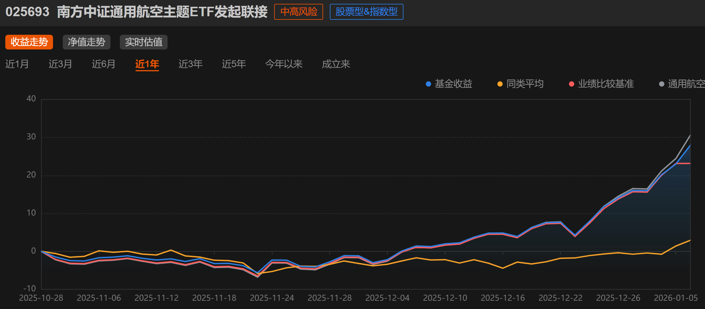 在当前市场环境下,抓住主线才是制胜关键。通用航空作为国家战略新兴产业,政策支持力度空前,技术突破不断,市场需求爆发,行业景气度持续上行。$南方中证通用航空主题ETF发起联接C$(025693)作为跟踪这一赛道的指数基金,具有分散风险、费率低廉、操作便捷等优势,是普通投资者参与通用航空行业投资的最佳工具。在震荡行情中,配置确定性高的主线资产,才能穿越周期,获取超额收益。不要等到板块起飞再追高,现在就是布局良机!#2025超额关键词#