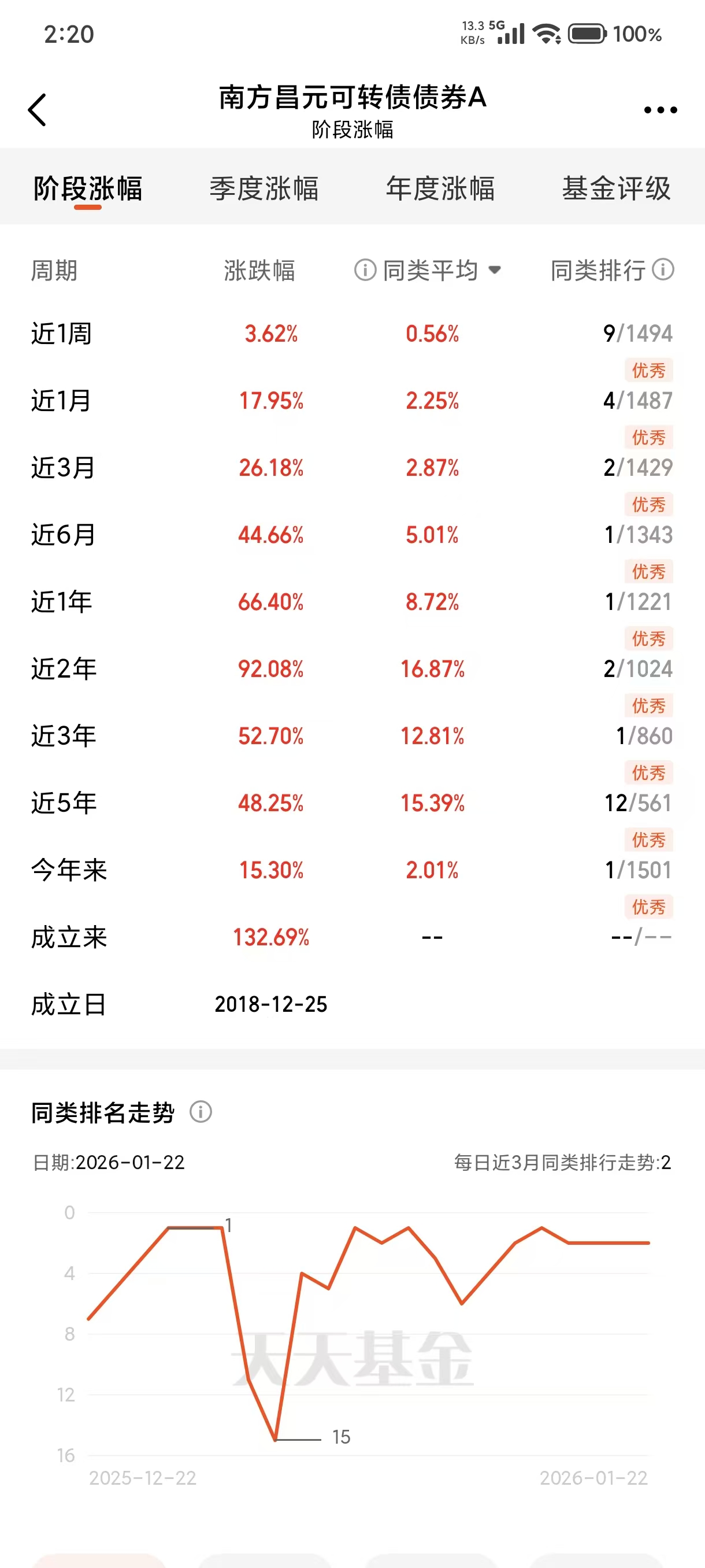 在纯权益类的投资难度增加,同时纯债券又难以提升收益率的大背景下,含权债基也就成了稳健资金的共识。今天我选择加仓1000元南方昌元可转债A(006030),这只基金主要投资于可转换债券,也可配置少量股票(通常不超过20%)以增强收益,会配置一部分利率债、信用债等纯债资产来平衡风险。$南方昌元可转债债券A(OTCFUND|006030)$
