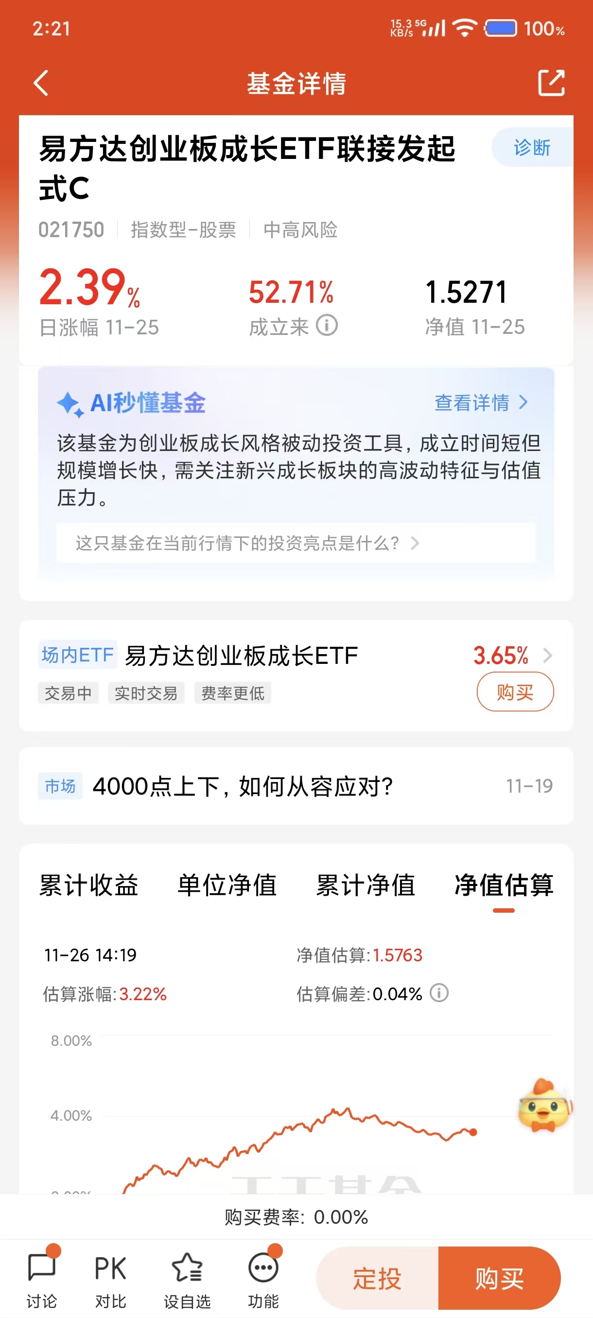 易方达创业板成长ETF联接发起式C(021750)其跟踪的“创业板成长指数”从创业板中筛选出成长风格突出的上市公司,行业上更侧重于电力设备、通信、医药、电子等新兴领域,这只基金有着很强的进攻动能,在牛市的上涨阶段,能够拿到更多的收益,业绩表现好于创业50和创业板指。$易方达创业板成长ETF联接发起式C(OTCFUND|021750)$