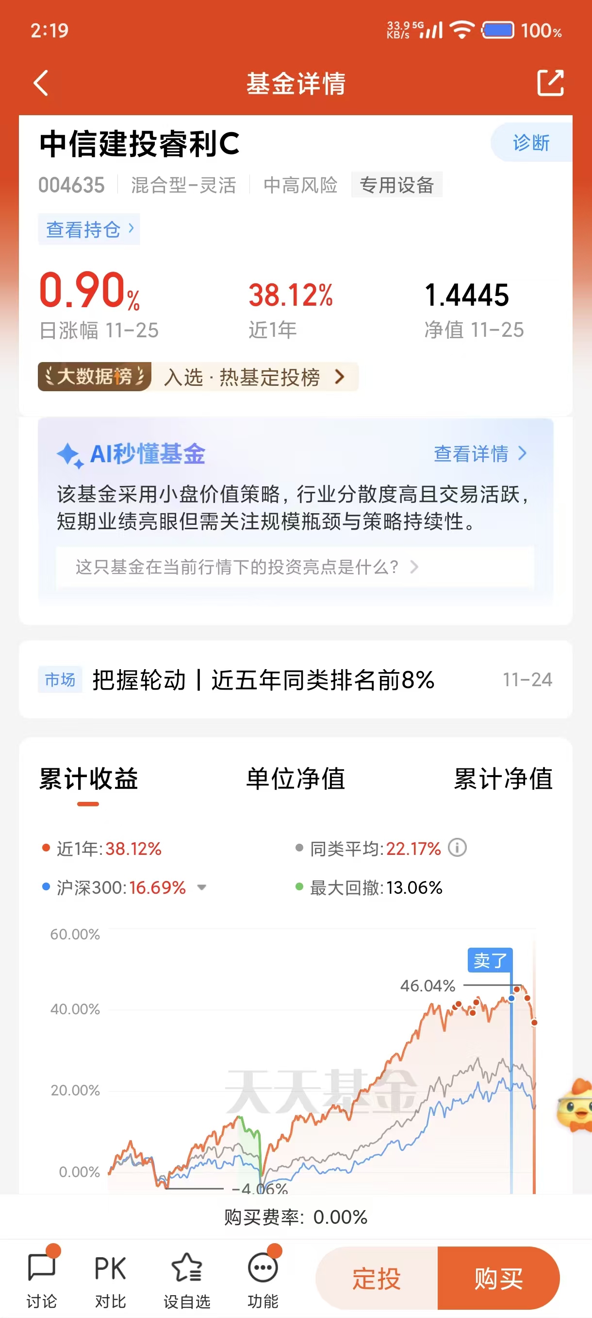 2、今天买入2000元中信建投睿利灵活配置混合C(004635),这轮牛市明显是政策推动下的资金行情,主要以对流动性敏感弹性更高的科技股涨得更强劲,主动量化基金在震荡市和牛市容易获得较多的超额收益。$中信建投睿利C(OTCFUND|004635)$
