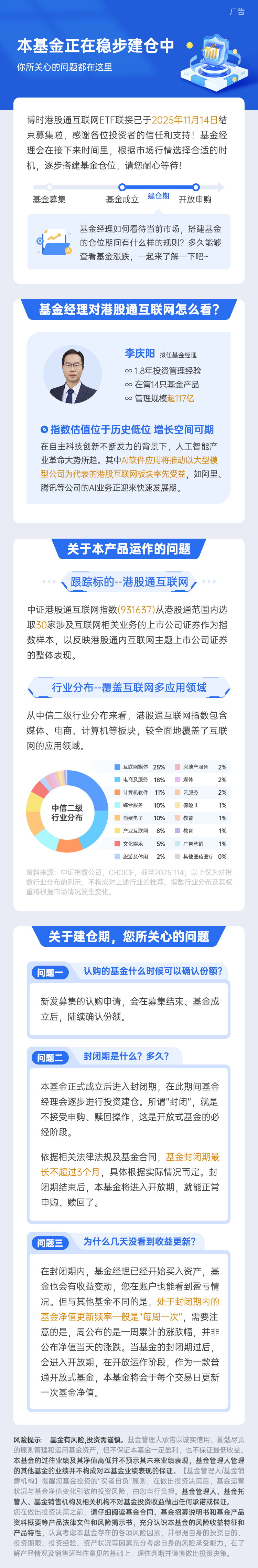 博时港股通互联网ETF联接基金正在稳步建仓中,你所关心的问题都在这里