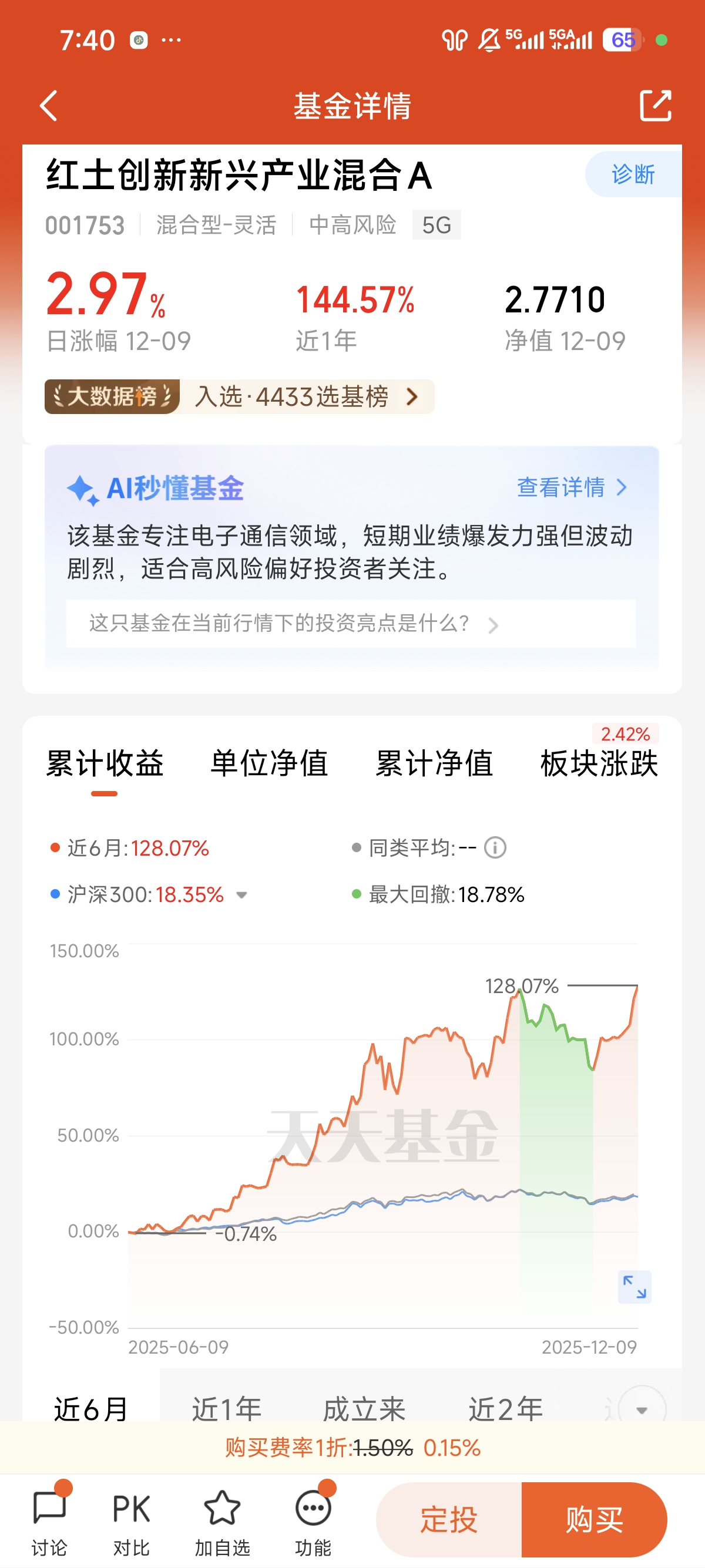 当前英伟达生态开放推动光通信及算力硬件供应链迎来重构期,行业格局调整过程中,国产厂商凭借技术升级获得切入全球核心供应链的重要机遇,叠加算力提升带动液冷技术从可选转为刚需、光模块持续迭代升级,相关赛道成长潜力持续释放。红土创新新兴产业混合(001753)紧密跟踪这一产业趋势,重点布局液冷与光模块两大核心赛道,持仓标的多在核心技术积累、主流客户合作基础等方面形成竞争优势,适配行业重构期的发展需求。从业绩表现来看,该基金近六个月收益率为 128.07%,印证了其在重构期的选股能力。