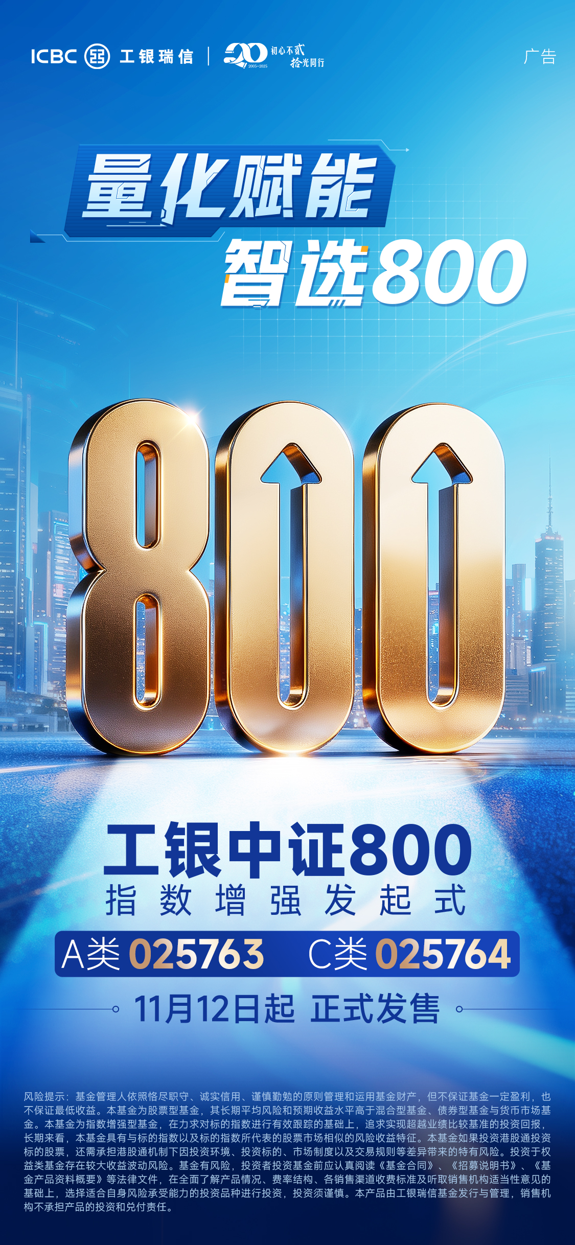 工银中证800指数增强发起式,11月12日正式发售!