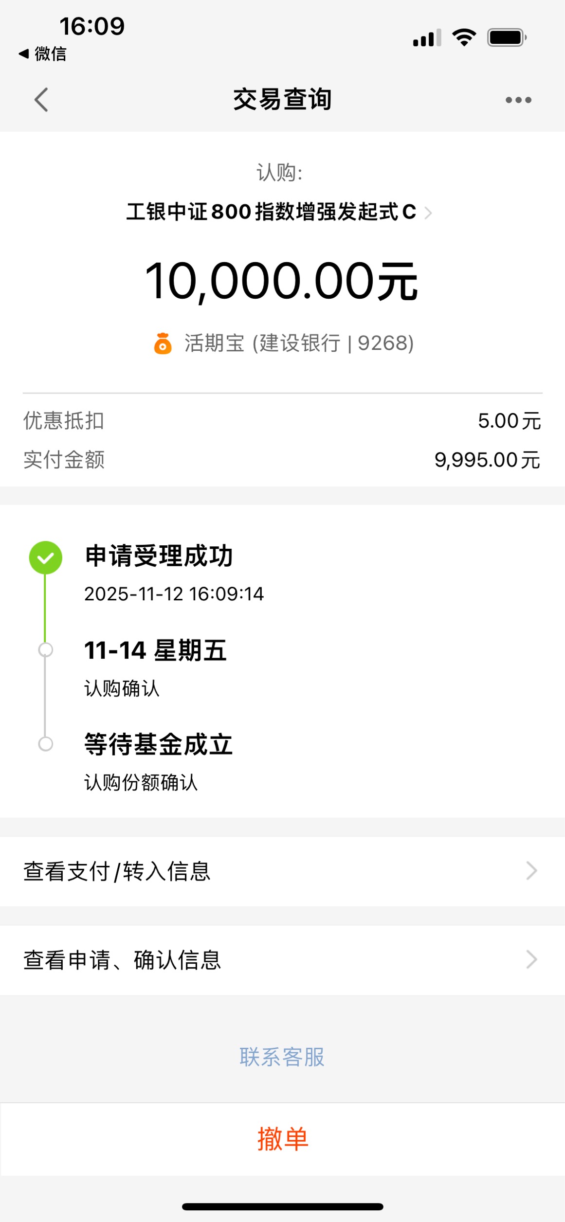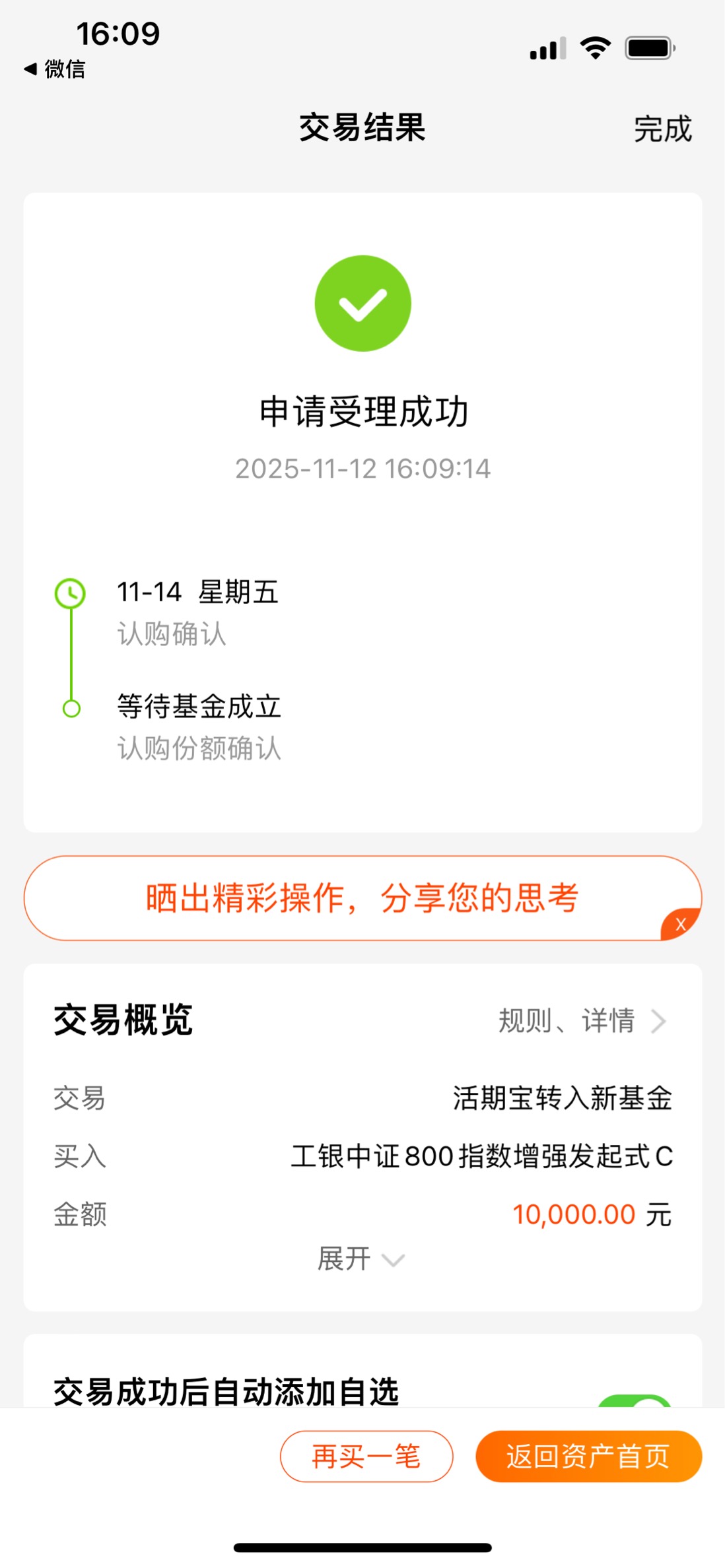 呕吼,铃儿响叮当又来报道了!这次,工银瑞信基金公司又举办活动了,简直太开心了,而作为工银瑞信基金的铁粉和坚定持有者,我必须来支持一下!我自己手里已经有好多只工银瑞信基金了,但是,我并不满足,我还想买!这次,工银中证800指数增强发起式基金面世了,我坚定要入手!因为,我确实没有中证800指数产品,这次正好满足我的心愿了,所以,决定入手了!开放申购后马上就买入!!!