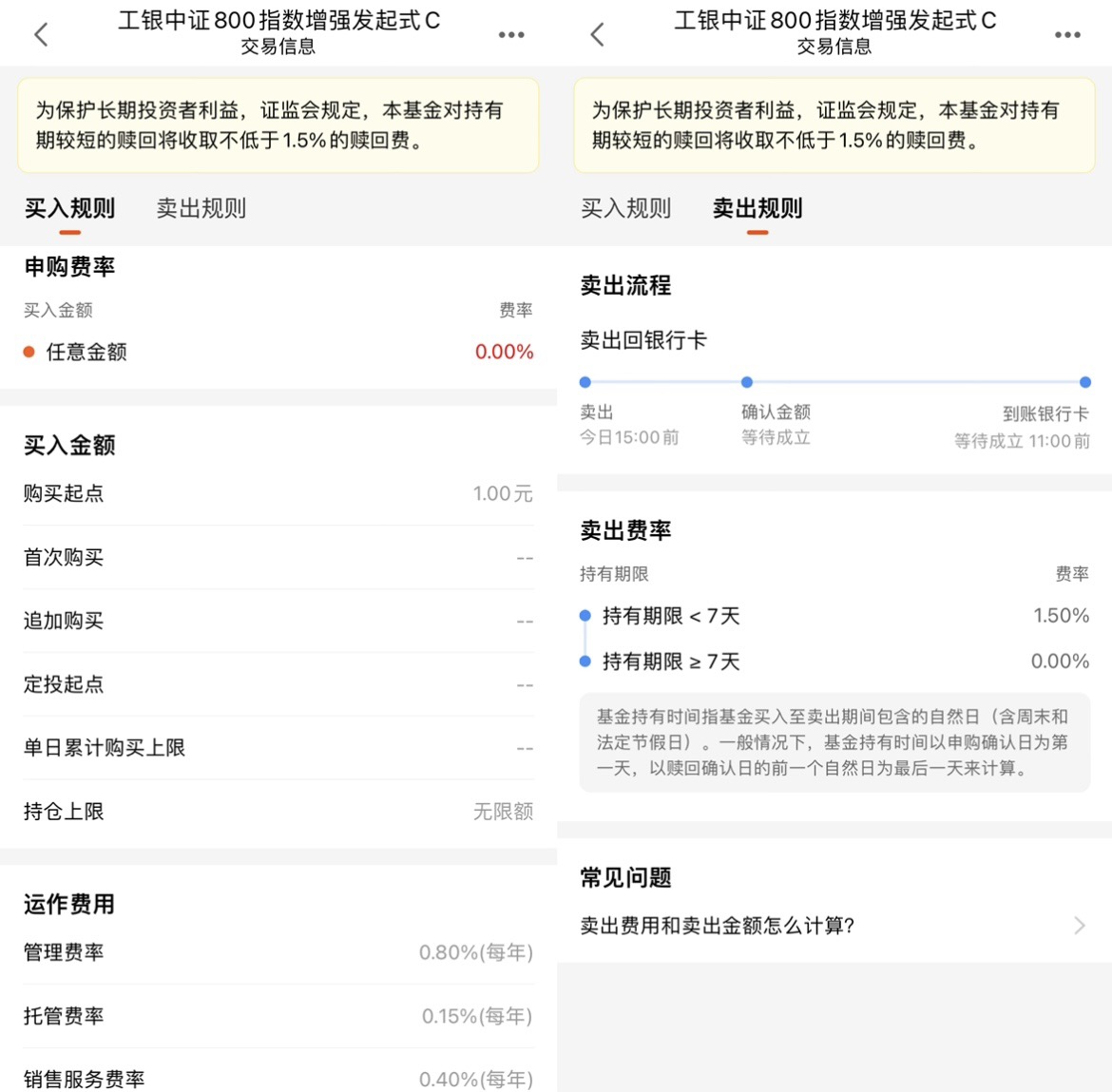 可能有人会问,现在市面上基金这么多,为啥非要等这只新基金?说实话,我之前也买过不少指数基金和主动基金,但体验都一般。纯指数基金只能跟着大盘走,遇到行情好的时候也赚不到超额收益;主动基金又太依赖基金经理的水平,碰到风格切换就容易翻车。而指数增强基金刚好解决了这两个问题,既有指数基金的稳健,又有主动管理的弹性。而且工银瑞信作为大基金公司,在量化投资和指数增强方面经验很足,之前发的不少指数增强产品都跑出了不错的超额收益,让人放心。作为持有者,我是深有体会!另外,这只基金还有A类和C类可选,A类适合长期持有,C类没有申购费,持有短时间卖出也没赎回费,像我这样想分批布局、灵活调整的,选C类就特别合适,不用纠结手续费的问题。