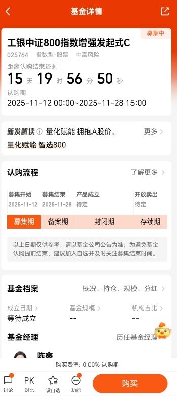 刚好看到工银中证800指数增强发售,瞬间戳中需求!这段时间市场缺长期主线,中证800本身就把大盘蓝筹和中小盘成长都包圆了,行业分布还均匀,等于一键握住A股核心资产——不管后续是大盘领涨还是中小盘发力,均衡布局都能跟上节奏,不用再愁“踏错风格”。