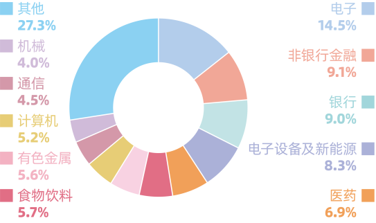 从市值分布来看,偏向中盘到大盘,结合了沪深300的大盘蓝筹风格与中证500的中盘成长,风格较为均衡。
