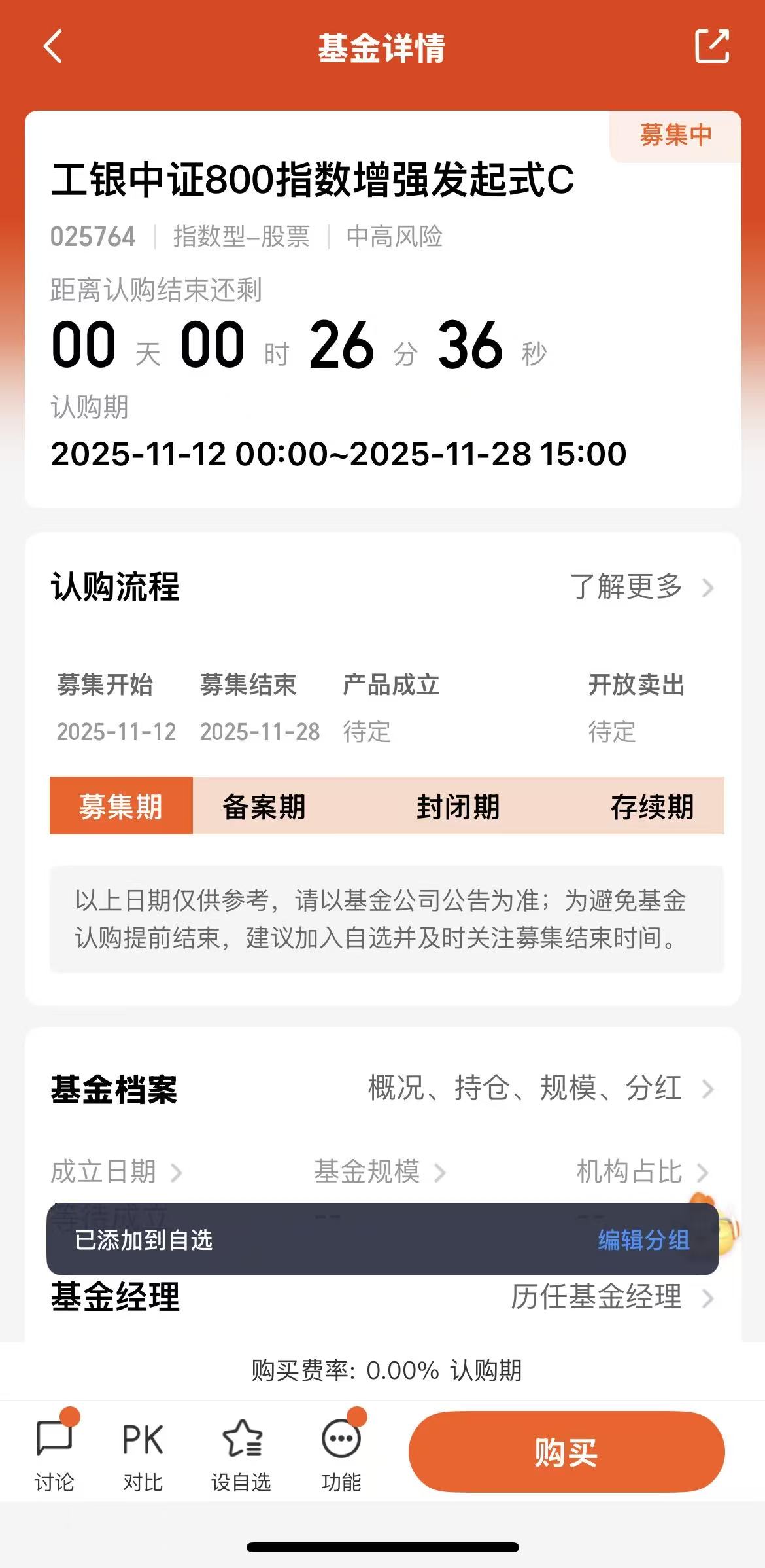 综上所述,我已将本基金加入自选并认购,希望它能给我们带来好收益!