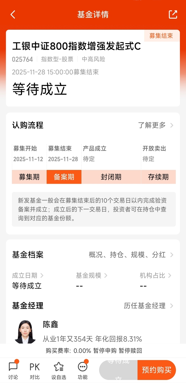 对定投者而言,该基金C类份额(025764)的设计尤为友好:免申购费、持有满7天免赎回费,仅收取0.4%每年销售服务费,适合周定投的频繁操作。笔者计划自发行日起每周定投,利用波动积累份额,以纪律克服人性弱点。