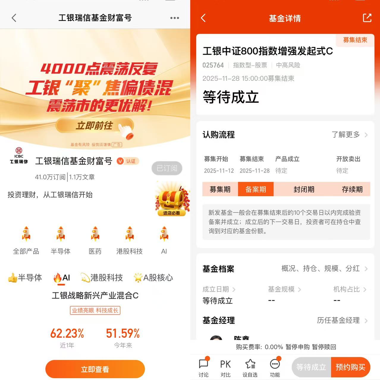 从历史业绩看,工银瑞信在指数增强领域表现突出。例如,工银中证1000ETF增强近1年超额收益达53.96个百分点,信息比率2.91,同类排名前10%;工银中证500六个月持有期指数增强基金2025年三季度超额收益27.86%,年化30.81%。虽然工银中证800指数增强基金为新发产品,但其团队在指数增强领域的丰富经验为投资者提供了信心保障。