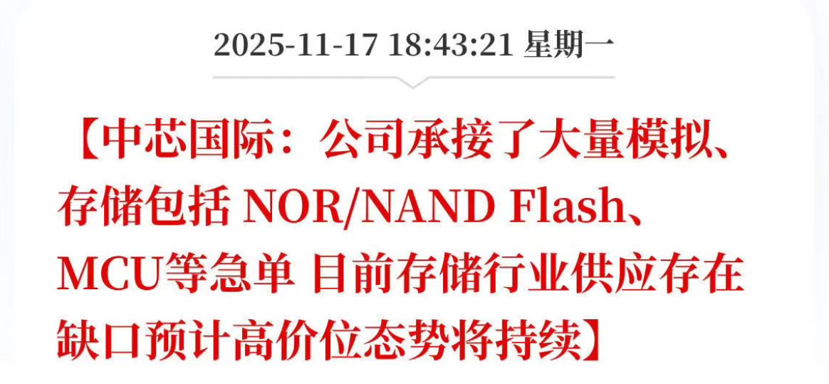 另外三星砸450万亿韩元建存储芯片新厂,中芯国际承接大量模拟、存储急单,大佬都押注的赛道,咱还有啥好慌的?继续看涨存储芯片!