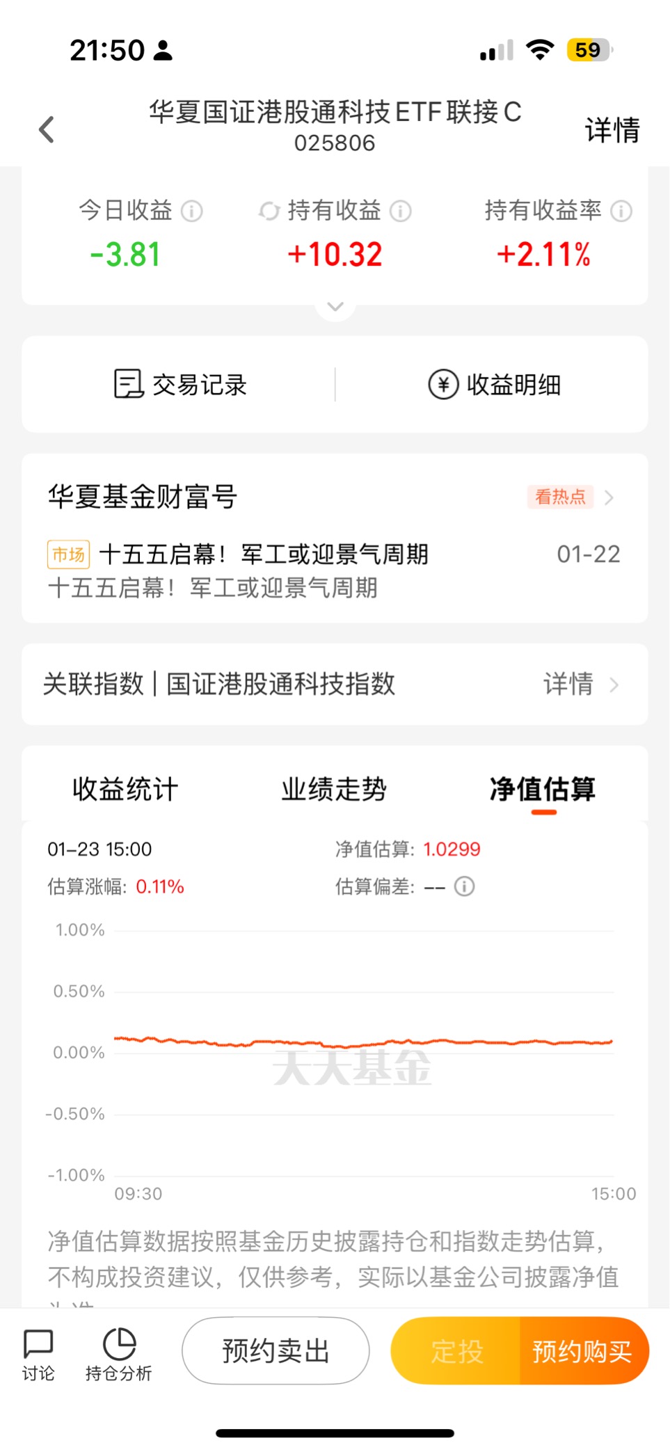 $华夏国证港股通科技ETF$ 1.23号场内上涨$华夏国证港股通科技ETF联接C$ 你连接能亏说明实力不行