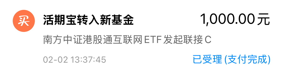 我加1000元 $南方中证港股通互联网ETF发起联接C(OTCFUND|026555)$