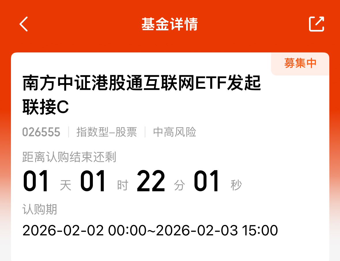 虽然今天港股和A股科技板块受市场情绪回落并没有及时埋单,但总归是利好,尤其是港股互联网现在低估,待情绪企稳随时有可能会反扑。中证港股通互联网指数与其他港股科技指数相比更聚焦互联网大厂,锐度高弹性大,我买的是南方中证港股通互联网,优势在于产品明天结束募集,后天就进入到建仓期,新发仓位从0开始,可以在回调节点扫到更便宜的筹码,这就是为何今天我抄底港股互联网选这只。
