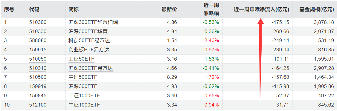上周ETF市场资金申赎净流入情况